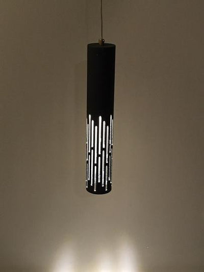 This stylish pendant light model#CA1976-H is a nice addition to a little nook we have. The black metal shade with cut-out design is pretty to look at and also makes a nice pattern when lit. Although it doesn't throw wide light it is nice as an accent lighting piece. The only downside is that the wiring does look a bit thin and it would have been nicer if it had been more heavy duty. But overall a stylish accent light for the money. And it does come with its own light bulb installed.
