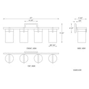 Dimensions: The whole light fixture is W 27in. x H 9.25in., the diameter of glass shade is 3.75in., the back plate is W 6.25in. x E 0.75in. x H4.5in.