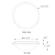 The light fixture is D 15.75in. x H 5.25in., the ceiling mount is D 13.75in. x H 0.75in.