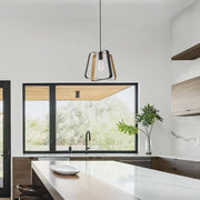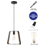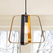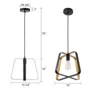 The crossing metal frame adds rustic vintage flair to your space, and it boasts a rustic-finished look, designed to cast a soft ambient light over your room. The rustic hanging light fixture combines black leather with outer black inner gold metal in a trapezoidal presentation, the two frames can be revolved to fully perpendicular or one is inside the other according to needs. Because it is produced with multiple finishes of black and gold, you can mix and match it in your space. This simple yet artistic pendant light adds a farmhouse, vintage, rustic, and stylish charm to your home.