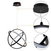 16in Black Aluminum Adjustable LED Globe Chandelier