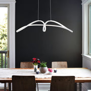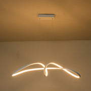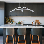 The understated and streamlined design pendant light is original and will impress your guests. It features a wavy aluminum frame with a white finish and Integrated LED strips. The LED light source rotating around the body creates a splinter effect and illuminates effectively in all directions. This elegant and modern lamp is perfect to illuminate with style rooms of your home such as the living room, dining room, and large bedrooms.