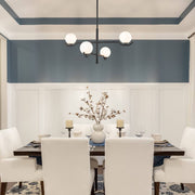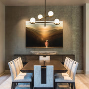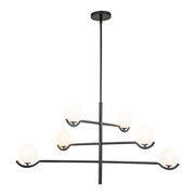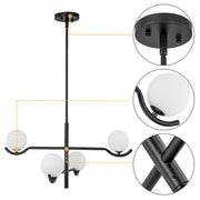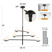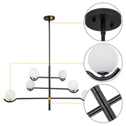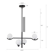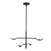 This 4-Light sputnik modern Linear chandelier pendant light is a great blend of modern classic and transitional styles. It's shaped in modern linear and glass globes , featuring black finish and white frosted opal glass shades, , which looks low-profile but has the elegant and minimalist aesthetics. The elegant yet simple design will bring timeless style to any space, is ideal for over kitchen island and dining room table, or in a living room and hotel room.