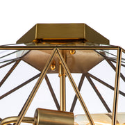 This diamond-shaped two-light flush mount lighting is full of exquisite style and adds eye-catching color to your lighting ensemble. The details of the brass frame add a sense of refinement to your decoration, and the transparent panel adds a sparkling style to any space. It has a spliced transparent glass cover, which can evenly diffuse light to the entire area. Whether you want to add a stylish touch to your dining room or install lighting at the entrance, this light will brighten the eyes of you and your guests. It is not only easy to install but also easy to clean, just wipe it with a soft dry cloth. Can accommodate two compatible 60 W bulbs, but not included.