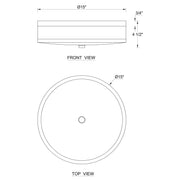 - Product dimension: The flush mount fixture is D 15 in. x H 4.5 in., the ceiling plate is D 15 in. x H 0.75 in.