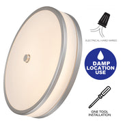Full of sleek lines and an understated appearance, this flush mount shows off plenty of modern styles as it hangs over your dining table or in your living area. The frame features two rings crafted from metal with a satin nickel finish for that extra bit of shine we love. Made from acrylic, the shade strikes a cylindrical silhouette to filter the light from the dimmable integrated LED. With a hanging height of only 4.5", it's ideal for rooms with low ceilings. Plus, this mount is rated for damp locations, so it's safe to install in high-moisture environments.
