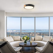 12.75 in Black Dimmable 20-Watt Selectable LED Flush Mount Ceiling Light 2700K 3000K 4000K 5000K 6500K with Wood Accent
