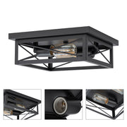 2-Light Black Square Flush Mount Ceiling Light with Turnable Light Cap(2-Pack)