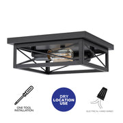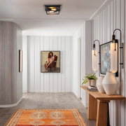 Elevate your home’s ambiance with this modern industrial flush mount ceiling light. Featuring a sleek black metal frame with a geometric open-cage design, this fixture is a perfect blend of style and functionality. The exposed bulb design enhances its warm glow, making it ideal for entryways, hallways, or dining areas. Its durable construction ensures long-lasting performance, while the simple design allows for easy installation.