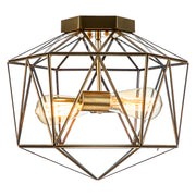 This diamond-shaped two-light flush mount lighting is full of exquisite style and adds eye-catching color to your lighting ensemble. The details of the brass frame add a sense of refinement to your decoration, and the transparent panel adds a sparkling style to any space. It has a spliced transparent glass cover, which can evenly diffuse light to the entire area. Whether you want to add a stylish touch to your dining room or install lighting at the entrance, this light will brighten the eyes of you and your guests. It is not only easy to install but also easy to clean, just wipe it with a soft dry cloth. Can accommodate two compatible 60 W bulbs, but not included.