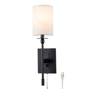 1-Light Black Hardwired and Plug-in Wall Sconce with Fabric Shade and ON-OFF switch