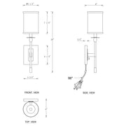 - Product Dimensions: The overall fixture is 20'' H x 5.25'' W x 6'' E , the fabric shade is 5.25'' D x 7.25'' h, the wall plate is 4.75" W x 6.25" H x 0.75"E, the length of plug in cord is 8ft.