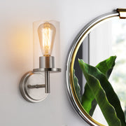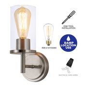 1-Light Satin Nickel Wall Sconce with Cylinder Glass(2-Pack)