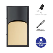 Bring a modern edge to your lighting design with the this outdoor wall sconce. The sleek metal shade in powder-coated black directs light down, reflecting off a gold stainless steel plate to create a warm pool of indirect light. The gold stainless steel plate diffuser complement the clean, modern lines, reflects the natural landscape outside. Integrated with energy-saving LED module, the contemporary style outdoor light is perfect for either interior or exterior use.