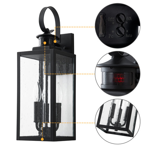 View full details2 Pack Motion Sensor Dusk to Dawn Outdoor Wall Lantern Sconce with Clear Seeded Glass