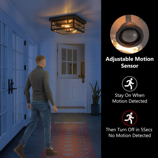View full details2-Light Matte Black Motion Sensor Flush Mount Light with clear glass