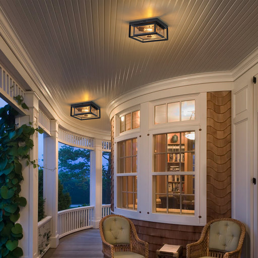 cattleyalightingAdd great style and great security features with this outdoor flush mount ceiling light.This square flush mount features metal construction with wh...