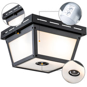 - Modern Design: Featuring an attractive matte black metal square casing with white textured glass panels, the flush mount will add a modern style, security and safety to front porch and patio areas.