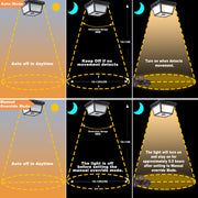 - AUTO Mode: The light will turn on when motion is detected,and stay on as long as the motion is continuing. When the motion stops,the light will remain on for the predetermined time set (5s~30min.), and then turn off.