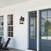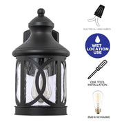 1-Light Matte Black Outdoor Wall Sconce with Seeded Glass Shade