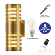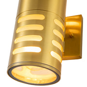 11.75 in. 2-Light Gold Finish Aluminum Cylinder Outdoor Wall Sconce