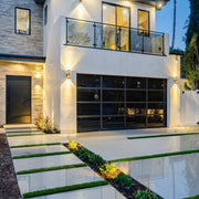 The outdoor sconce throws light up, down and to sides, giving out soft and warm light in 3 directions to decorate your house and portraying a nice ambiance. The cylindrical frame is made of die-cast aluminum, and the top and bottom are sealed with tempered glass. It will keep insects and moisture out of the wall sconce. They are very modern looking and give off plenty of light, illuminates your porch, entryway, courtyard, or other space.