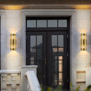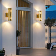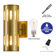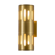 11.75 in. 2-Light Plated Gold Die-Cast Aluminum Cylinder Outdoor Wall Sconce