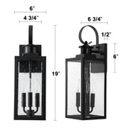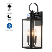 19in. 3-Light Motion Sensor & Dusk to Dawn Outdoor Wall Lantern with Seeded Glass and E12 Base Socket