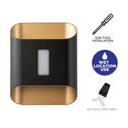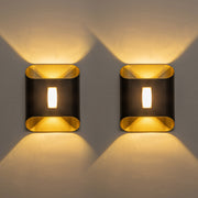 Made of square elements with a modern minimalist design, this wall mount light elegantly matches the exterior and interior of any home. The LED outdoor wall light finished in outer textured black inner gold provides a stylish contemporary design. Made from aluminum, it features integrated LEDs for optimum efficiency and ease of maintenance. The middle, up and down direction of the light creates a chic and cozy nighttime ambiance. With its high CRI90+ and 9W LED chips, it brings out your space's natural color with a better lighting effect. Simple yet chic, this wall lantern is the perfect addition to your home.