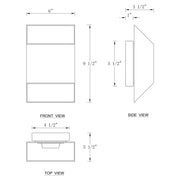 - Fixture is W 6 in. x E 3.5 in. x H 9.5 in., wall plate is W 4.5 in. x E 1 in. x H 5.5 in.