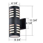 2-Light Matte Black Dusk to Dawn Cylinder Outdoor Wall Sconce
