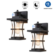2-Pack 11.25in. Motion Sensor Outdoor Wall Sconce, Dusk to Dawn Exterior Light Fixtures with Seeded Glass
