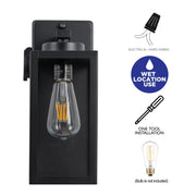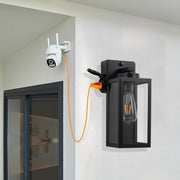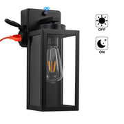 A perfect blend of aesthetics and functionality, this outdoor wall light features a simple rectangular metal frame with a clear glass shade that can bring bright and cozy light to your outdoor space. The light has a built-in outlet and is equipped with a dusk-to-dawn light sensor, making it easy to power outdoor electronics and turn the light on/off automatically. Designed to live outdoor, its sturdy metal frame and weather-resistant coating ensure that the fixture will perform well in all weather conditions, making it ideal for front door, patio, garage, porch or deck.