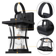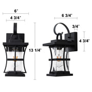 2-Pack 13.25in. Matte Black Outdoor Wall Light Fixtures with Seeded Glass Shade