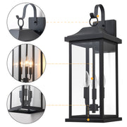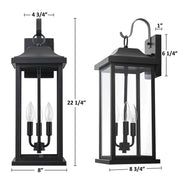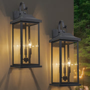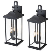Upgrade your outdoor lighting with this 2-pack of large wall-mounted lanterns, designed with a bold rectangular frame and a sophisticated matte black finish. The clear glass panels allow the triple candelabra-style bulbs (3xE12) to shine brightly, offering a warm, welcoming glow ideal for porches, garages, patios, or entryways. Built to withstand the elements, these lights are crafted from weather-resistant materials for long-lasting durability. With compatibility for incandescent, LED or other kinds of E12 bulbs, you can easily customize the lighting to suit your aesthetic. A perfect blend of classic elegance and practical design for any home exterior.