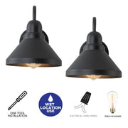 2-Pack 9.25 in. Matte Black Gooseneck Outdoor Barn Light Sconce