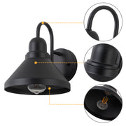This outdoor wall light seamlessly blends modern elements with rustic farmhouse style. Featuring a classic matte black frame paired with a unique gooseneck arm, it offers a minimalist yet sophisticated aesthetic. Not only does it provide soft lighting for outdoor spaces, but it also adds a touch of elegance to your decor. It's the perfect choice for illuminating porch, patio, balcony, garage, and more.