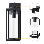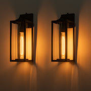 Transform your outdoor areas with this 2-pack of stylish wall lights. The matte black frame and tempered clear glass combine for a classic design that suits any space. With a built-in dusk-to-dawn sensor, these lights automatically adjust to ambient light, turning on at night and off in the morning for hands-free operation. The E26 socket offers flexibility to use LED, incandescent, or Edison bulbs. Designed to withstand harsh weather, these durable lights are ideal for porches, patios, garages, and more, providing a perfect blend of practicality and elegance for your home.