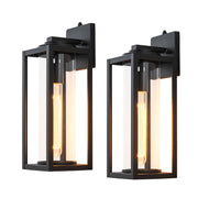 2 Pack Dusk to Dawn Matte Black Outdoor Wall Light with Cylinder Clear Glass Shade
