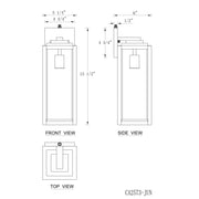 Dimensions: The size of the outdoor wall sconce is W 5.25” x D 6” x H 15.5”, and the mounting plate is W 4.75” x H 4.75”.