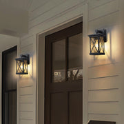 Geometric Design: Featuring a clean, modern frame with intersecting lines, this matte black outdoor wall light adds a stylish and sophisticated touch to any exterior décor while providing ample illumination.