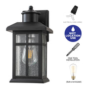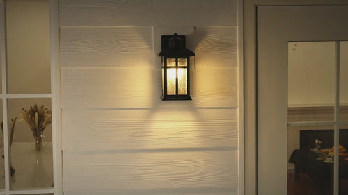 Elegant Modern Design: This outdoor wall light features a striking matte black finish paired with a timeless lantern shape and textured seeded glass, creating a perfect blend of sophistication and style. Its versatile design enhances the beauty of both traditional and modern home exteriors.