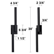 30in. Black Dimmable 26W LED Outdoor Wall Sconce with Frosted Glass
