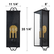 35.25 in. Black Outdoor Wall Lantern Sconce with Seeded Glass and Gold Accent