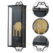 Two‑tone Finish: The black powder-coated frame provides a durable, weather resistant exterior, while the polished gold back plate and candle sleeves introduce a refined, upscale accent that catches the eye.
