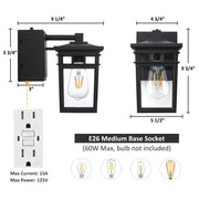 9.75ā Matte Black Dusk to Dawn Outdoor Wall Lantern Sconce with Built-in GFCI Outlet