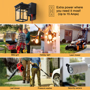 Wide Compatibility: The GFCI outlet (Max 15A, 125V) with two receptacles is compatible with 2-prong and 3-prong plugs. It provides a perfect power solution for outdoor electronic devices like security camera, grill, holiday string light or lawnmower, making outdoor activities more convenient.
