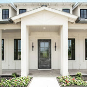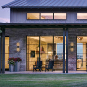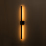This sleek energy-efficient LED wall sconce is designed with a slim vertical silhouette for a dimensional look. A matte black finish covers the aluminum back plate frame and elongated bar-shape light piece, creating a minimalist aesthetic and overall clean understated look. An integrated 26W LED casts bright illumination against the wall, creating a soft glow to guide you to the front door or walkway. Plus, it's weather-, rust-, and UV-resistant, and it's safe to use in wet locations, so you can install it anywhere outside without worry.
