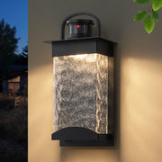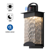 Black Motion Sensor Dusk to Dawn LED Outdoor Wall Lantern Sconce with Bubbled Water Glass