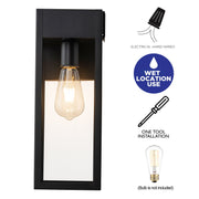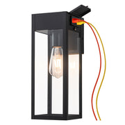 Elevate your outdoor lighting experience with this contemporary outdoor wall lantern featuring a built-in GFCI outlet. Designed for both style and practicality, this fixture combines a clean, modern aesthetic with functional convenience. The integrated GFCI outlet is perfect for powering outdoor tools, holiday decorations, or other devices, making it a versatile addition to your home’s exterior. Constructed with a robust metal frame and sleek clear tempered glass panels, this lantern ensures durability and maximum illumination. Ideal for patios, porches, and entryways, it offers both safety and sophistication.